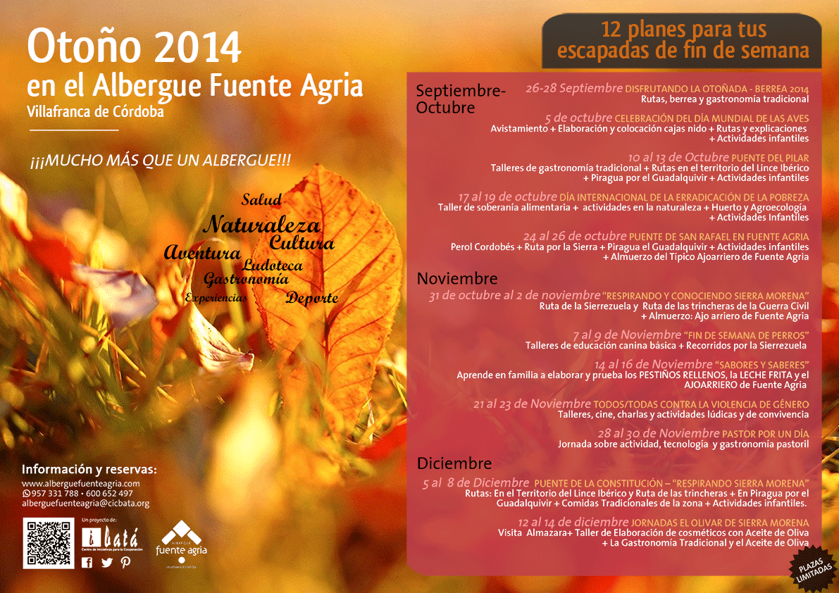 A continuación os dejamos información a cerca de las diferentes actividades que desde el Albergue Fuente Agria tenemos preparadas para el Otoño.